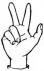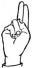На ћирилици написано ВЕЉКО ГЛУШИЋ састоји се из 11 слова [?]. Исписано ћириличном једноручном азбуком за глувонеме: